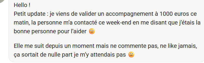 → J'ai enfin commencé à vendre avec moins de 200 abonnés, sans avoir à prospecter et en arrêtant d'avoir honte de me vendre.